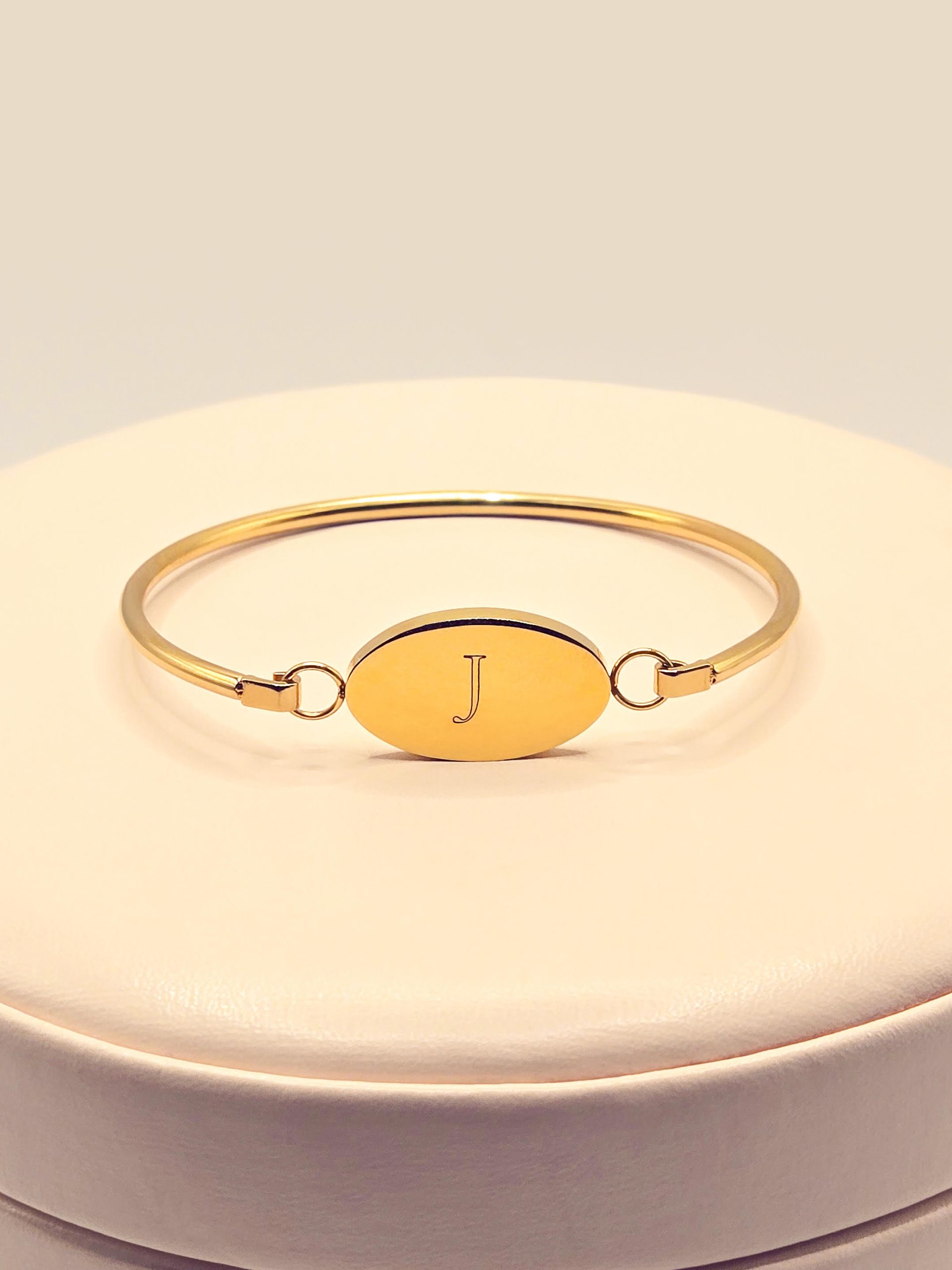 - BRACELET: An 18-karat gold-plated stainless-steel bracelet, expertly engraved to reflect your personal meaning. Customize it with your name, a meaningful word, or a single letter. This beauty is designed for everyday wear, thoughtfully crafted to accompany you through every season of life.