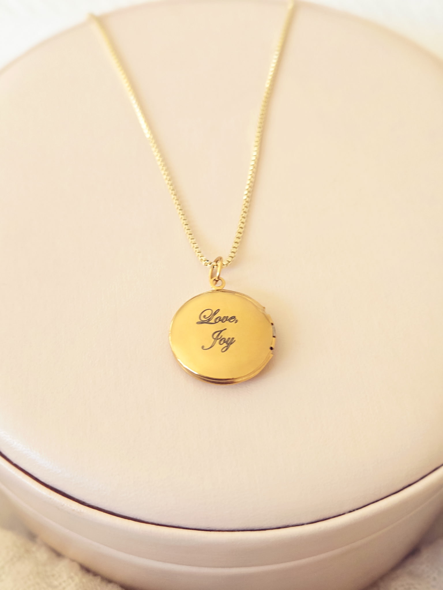 - CUSTOMIZED LOCKET: A circular gold-plated stainless-steel pendant, expertly engraved to reflect your personal meaning. Customize it with a name, a single letter, or a word that speaks to your journey. (30×27 millimeters)